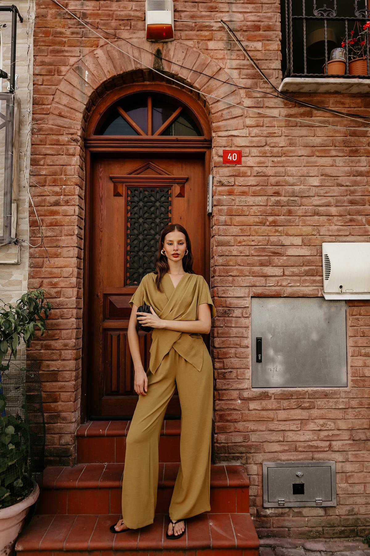 • Elegant khaki two-piece set suitable for casual and formal wear